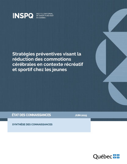 La présente synthèse des connaissances porte sur les stratégies préventives visant à réduire le risque de commotions cérébrales chez les jeunes de moins de 25 ans en contexte récréatif et sportif. Elle a été élaborée à la demande du ministère de la Santé et des Services sociaux dans le cadre de l’entente Traumatismes non intentionnels.